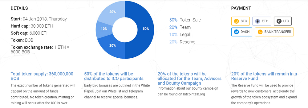 Soft cap 10,000ETH, Hard Cap of 30,000 ETH